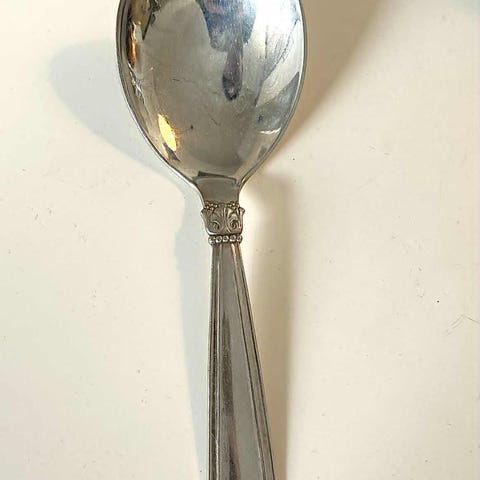 Håndtaget er lavet af sølv, mens selve spaden er lavet i rustfrit stål.