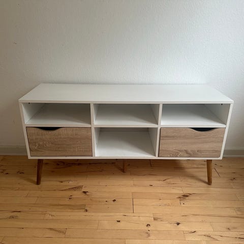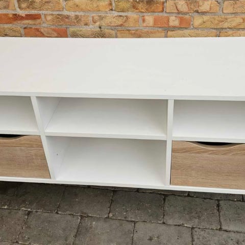 Tv-bord af mærket Delta. Nypris 1.359 kr. Det har fået 2 mærker bagpå (se billederne) da tv'et engang væltede bagover. Man kan ikke se mærkerne når tv'et står på bordet.