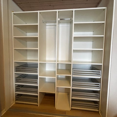 Begge skabe er komplette med både hylder og bøjlestang, så der er masser af plads til både tøj og opbevaring.