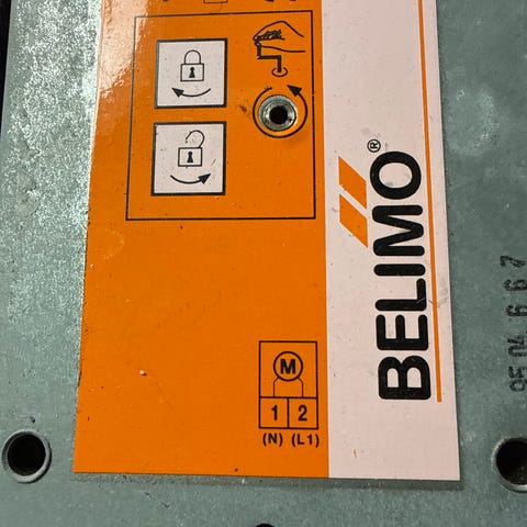 Belimo NM24-SR servomotor med en drejningsmoment på 8 Nm. Anvendes til styring af ventiler og spjæld i HVAC-systemer. Kompatibel med 24V AC strømforsyning.