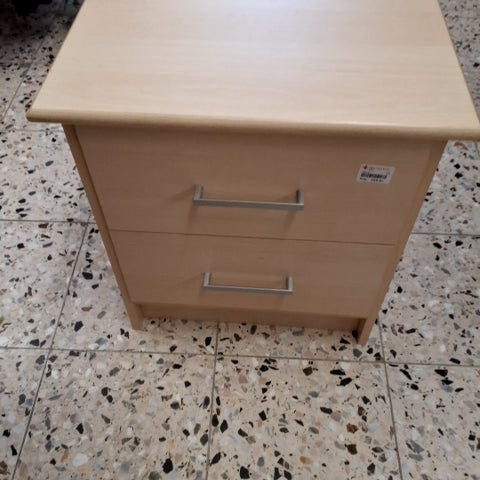 Møblet er en hvid natbord med tre skuffer og metalhåndtag. Det har en klassisk stil.,Afhentes i:,Røde Kors Ølby/Køge (259),Bemærk at mail, chat og beskeder ikke besvares, og varen skal købes på knappen "Gå til varen"