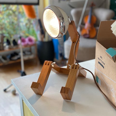 Mr. Wattson er fremstillet af asketræ, aluminium og metal.