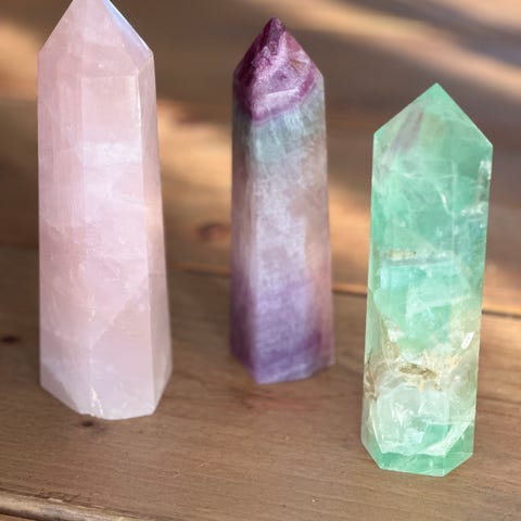 Tårn i apatit med en vægt på 177 gr. Højden er 9,7 cm og bredden I bunden er 3 cm.