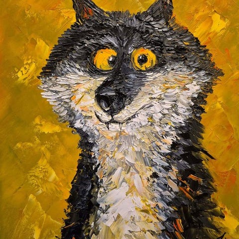 Dette ekspressivt tegnede blad stammer fra miljøet omkring den anerkendte Galerie Levy og er skabt af den spanske kunstner Maria José López y López, født i 1951, som Galerieen repræsenterer. Nederst til venstre er det utydeligt signeret i orange og rødt. Kunstneren er opvokset i Anguix, provinsen Guadalajara, Spanien. Interessant er også, at i den anden gang anvendte galleriindramning var der oprindeligt en tegning af den tyske ekspressionist George Grosz fra 1915, som viste cirkusartisterne Carl og Lotty (værkregister nr. 5-182-6).