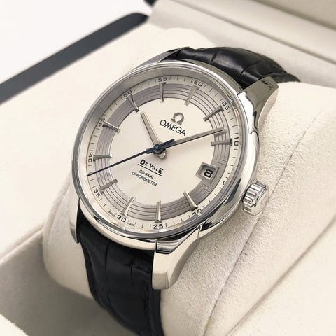 Omega De Ville Co-Axial Olympic Collection, reference 422.13.41.50.04.001, automatisk, stålkasse 41 mm, hvid skive, safirglas, læderrem, foldelukning i stål, til håndled op til 19 cm, meget god stand med mindre tegn på slid, uden æske eller papirer. Klik på den blå "gå til varen" knap, for at købe eller byde på denne vare. Den samlede pris vil blive vist inden du afgiver dit bud.