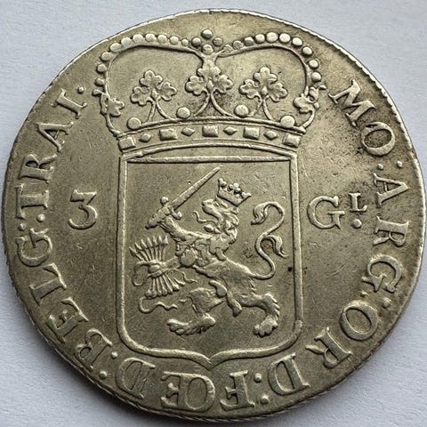 Sølv 3-gulden mønt fra 1793 fra Westfriesland, Nederlandene; ikke certificeret og over 200 år gammel. Klik på den blå "gå til varen" knap, for at købe eller byde på denne vare. Den samlede pris vil blive vist inden du afgiver dit bud.