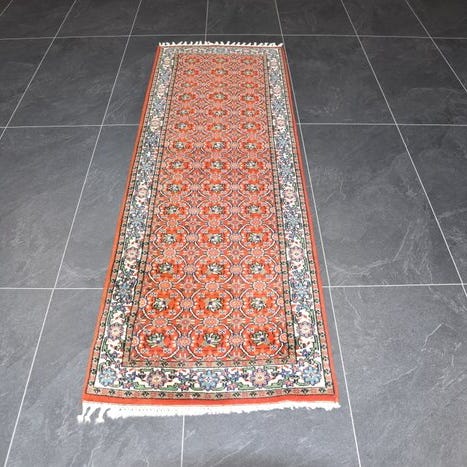 Indien håndvævet persisk løber, Sarough Mir‑design, fåres uld på bomuldssider, ca. 270 × 73 cm. Klik på den blå "gå til varen" knap, for at købe eller byde på denne vare. Den samlede pris vil blive vist inden du afgiver dit bud.