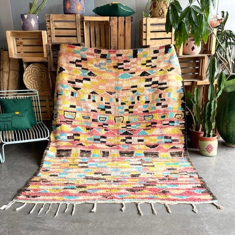 Autentisk marokkansk løber fra Haouz-området ved foden af Middle Atlas-bjergene. Håndvævet af berberske kunstnere ved brug af traditionelle teknikker og naturligt fåreuld.