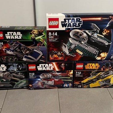 Sæt LEGO Star Wars bestående af 6 officielle artikler, ideelt for samlere eller fans af sagaen.