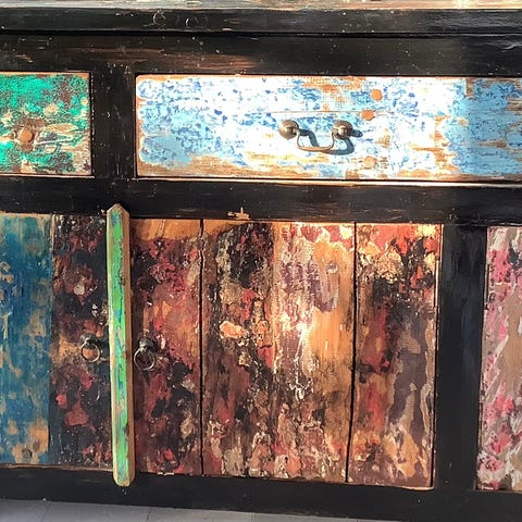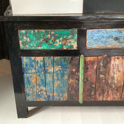 Skænk fra Bali lavet af ophuggede Fiskerbåde. Nypris 10000kr