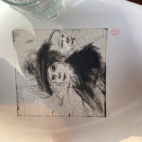 BERNET - Original litografi på kraftigt papir i pergamentlignende struktur. Sort China-ink.