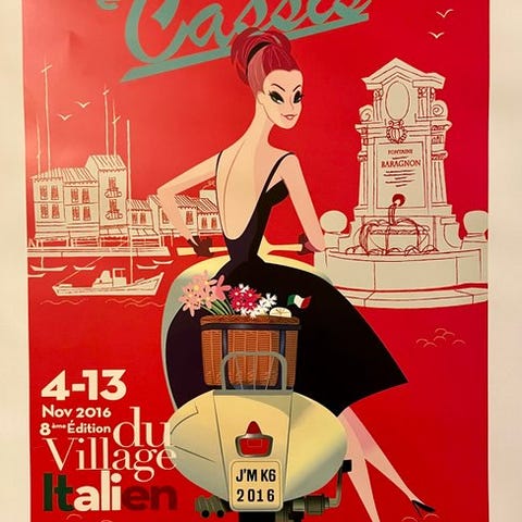 Plakat til fremme af turismen i Cassis og det italienske arrangement.
