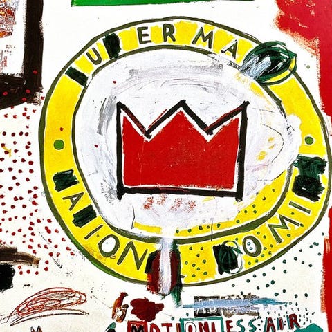 Jean Michel-Basquiat efter (1960-1988), Dustheads, 1982, Copyright Estate of Jean-Michel Basquiat, Licenseret af Artestar New York, Trykt i Storbritannien 8/55 OYD8SO. Dette tryk er i meget god stand.