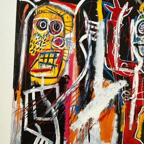 Jean Michel Basquiat efter (1960-1988), Ironi af Negro Politibetjent, 1981, Copyright Estate of Jean Michel Basquiat, trykt i Storbritannien 11/55 OYD8V4. Dette tryk er i meget god stand.
