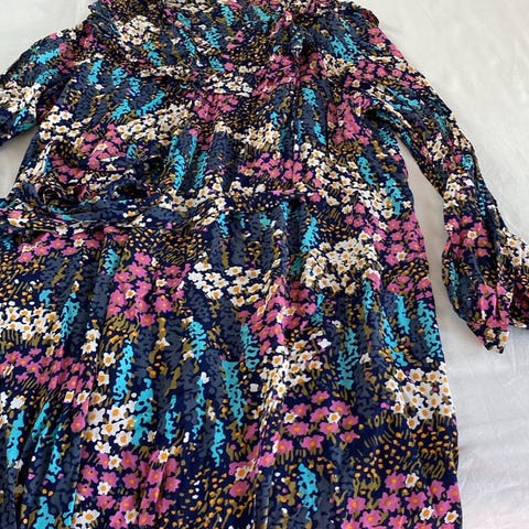 STELLA NOVA Hverdagskjole i blå farve, størrelse 36, lavet af bomuld. Kjolen har lange ærmer med knaplukning ved manchetterne og et ternet mønster pris er kun pillet af og hængt i skab og ubrugt