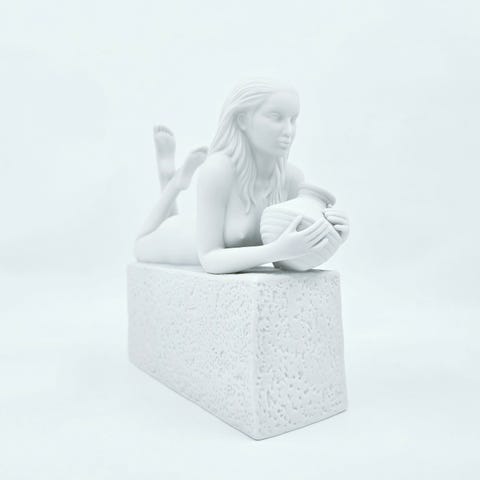 Her har vi en Stjernetegnsfigur som er udgået af produktion hos Royal Copenhagen, den første serie fra 2003, som Christel Marott & Pia langelund har designet i Biscuit Porcelæn, bliver nu kun produceret i polyresin. Vi har den ældre udgave vandmanden, i mandelig figur og hvid.