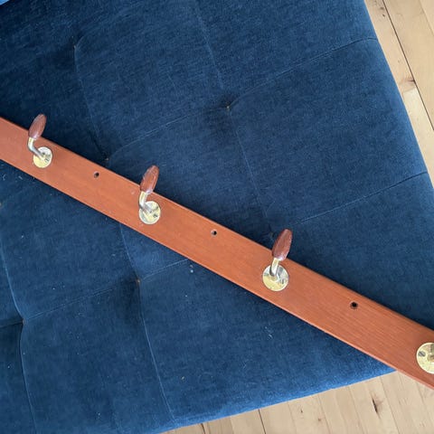 Vintage væghængt træ-knagerækker / coat racks fra den danske møbelproducent Aksel Kjersgaard i Ølsted