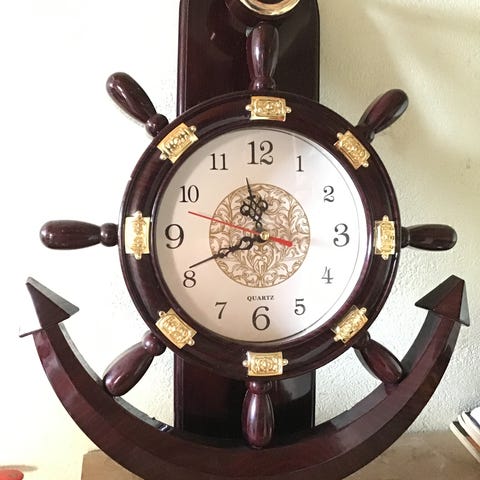 Antikt vægur med rund urskive, romertal og messingramme. Uret har en nøgle til optræk og visere i sort. Velegnet til vægophæng og samlerobjekt.
