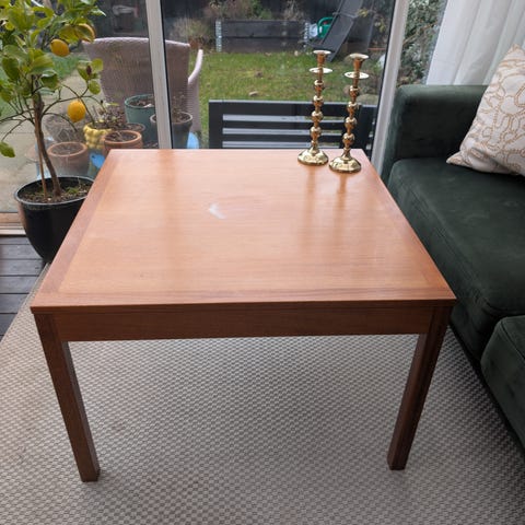 Brede 60cm, længde 80/160cm, højde 54cm. Bordet fremstår i urestaureret tilstand med brugsspor, billeder taget med min telefon, bordet er mørkere i virkeligheden, men uden skader. Sendes ikke.
