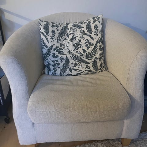 Brugt men i god stand. Lidt slid tegn på armlæn og sidde flade.