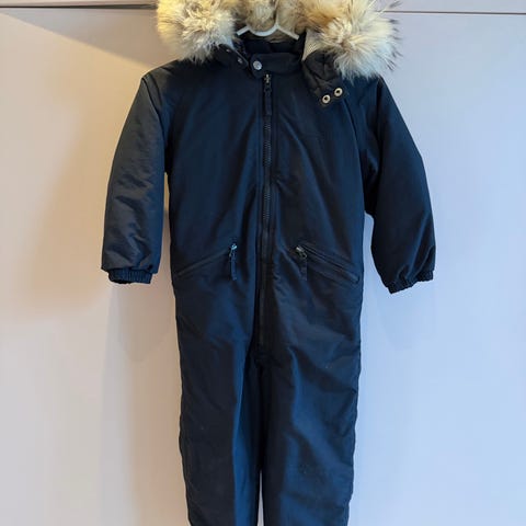 Super fin og velholdt flyverdragt fra Ver De Terre i farven Navy. Ingen brugsspor. Aftagelig hætte, vanter og futter.