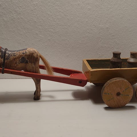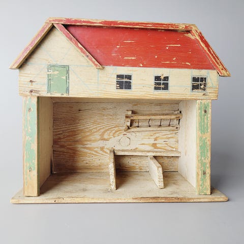 Stor stald med 12 trædyr. Håndlavet i danske fængsler af indsatte. Betegnes fængselslegetøj, som blev lavet i perioden 1905-1977. Blev solgt gennem Dansk Legetøjsfabrik.