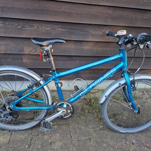 En delig cykel, som vores barn brugte til at lære at cykle, men han er for stor til den nu. Cyklen har 20" hjule med skærme, og 7-trins gear. Den er perfekt til børn fra 6-8 år.
