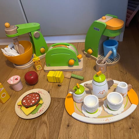 Vi sælger ud af vores legekøkken og øvrige legemad i træ og stof fra IKEA, Hape, Melissa & Doug, MaMaMeMo, Magni mv.,