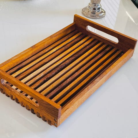 Håndlavet bakke, egetræ, kan bruges til at servere mad, 27 x 44 cm