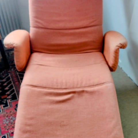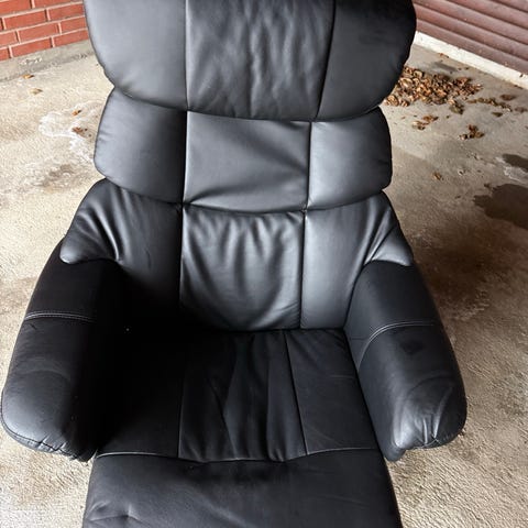 Sælger denne lænestol og puf som jeg har arvet fra min mormor, men vi har desværre ikke plads til den, så den må videre. Den er i fin stand men har en del pletter på lænestolens stof. Jeg kan dog se at man kan lyne betrækket af både siddepude og ryglæn, så en vask kan nok gøre underværker. Læderet på puffen har også tegn på slid og jeg har lidt svært ved at afgøre om det er ægte læder eller kunstlæder - nok det sidste. Man kan læne sig tilbage i lænestolen og man sidder ret godt med puffen til. Kan afhentes i Vanløse på Hyltebjerg Allé. Byd gerne.