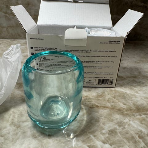Eva Solo lysglas sæt bestående af to blå glas til fyrfads. Designet til at holde lys og skabe stemning. Fremstillet i holdbart glasmateriale.