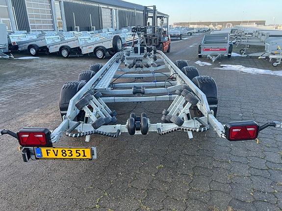 Ocean 1800 fra den danske trailerproducent Variant kan laste både op til 22 fod og er med blandt andet aftagelige lygteplade, ophalerspil med bånd og meget mere. Kan fåes med ekstraudstyr, som f.eks. el-spil med wire, surringsbeslag og spændebånd. Variant OCEAN 1800 har en totallængde på 729, bredde på 200 og en højde på 145 cm. Kan max laste både op til 22 fod. Bådtraileren er opbygget med 4 stk. kølruller, 12 stk. sideruller og en sporvidde på 178 cm. Traileren er med 2 stk. 14? hjul og er 1-akslet med bremse. Totalvægt fra 1.800 kg. og ned til 1.300 kg.Standardudstyr: Næsehjul med klembøjle Ophalerspil med bånd Helsvejset chassis 13 polet stik Justerbare køl- og sideruller