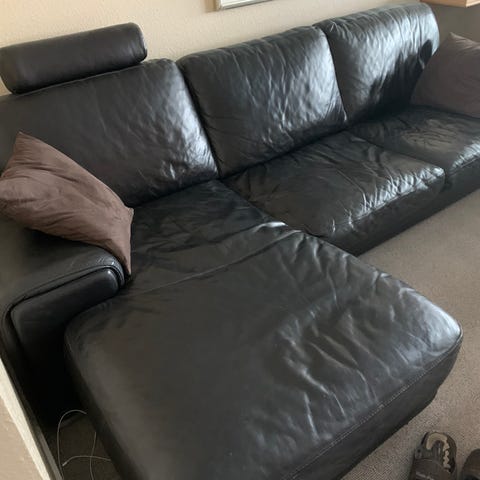 Ikea læder 3 per sofa + chaiselong med brugspor, sofa måler 202 cm + 91cm + 80cm , og chaiselong måler 90 cm +163 cm + 83 cm. Ny pris 8000+5000 .Sælges samlet eller separat