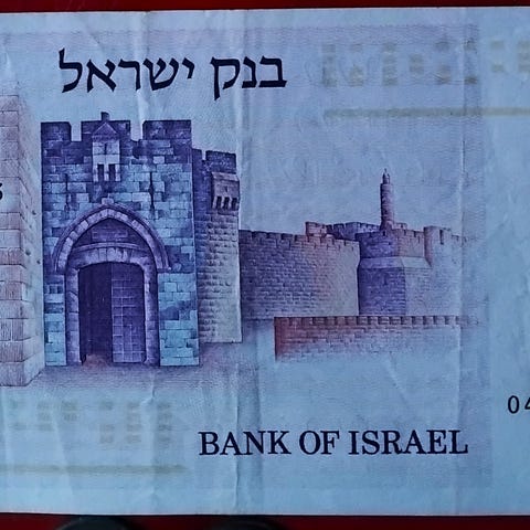 Sedler ISRAEL 1 SHEQEL 1978 p43 Moses Haim Montefiore & Jaffa Gate, Jerusalem