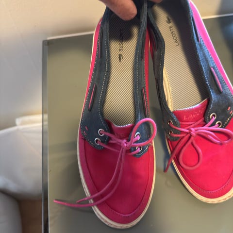 Celine Loafers og sejlersko i størrelse 45. Skoene er lavet af beige ruskind og har en klassisk snørelukning. Sålene er lyse og ser ud til at være i god stand. Velegnede til formelle og afslappede lejligheder.