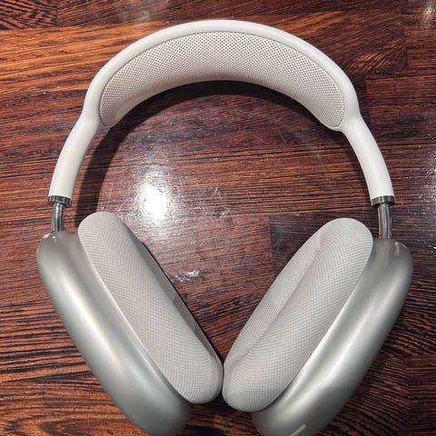 Apple AirPods Max hovedtelefoner i sølv. Brugt sparsomt, da jeg har to par. To små ridser, som kan ses på billedet, men de ses næsten ikke. Rigtig god stand og rene. Spiller perfekt og batteriet holder godt. Kommer med etui. Kvittering haves.