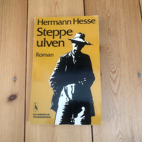 Hermann Hesse Steppeulven bog med tekst på dansk. Indeholder litterært indhold og er udgivet af Gyldendals Bekjasin bøger.