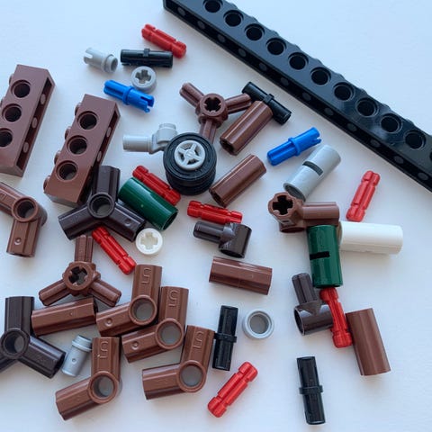 Denne samling indeholder en mængde LEGO Technic dele, herunder tandhjul, aksler og strukturelle komponenter. Delene er primært grå, men enkelte elementer har andre farver. De bruges til at bygge komplekse mekaniske modeller. LEGO Technic er kendt for sin evne til at kombinere legetøj med teknisk læring, hvilket giver brugeren mulighed for at konstruere alt fra køretøjer til maskiner ved hjælp af realistiske bevægelige dele.