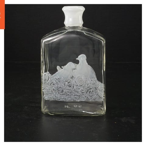 Flasken er lavet af messing og har et håndtag, der gør det nemt at bære. Den har en konisk top med en lille prop og en metalplade, der angiver teksten 'Genevier'. Den nederste del af flasken bærer inskriptionen 'M/T ESSO ELSINORE 1994'. Flasken måler 20,5 cm i højden og har en glat overflade.