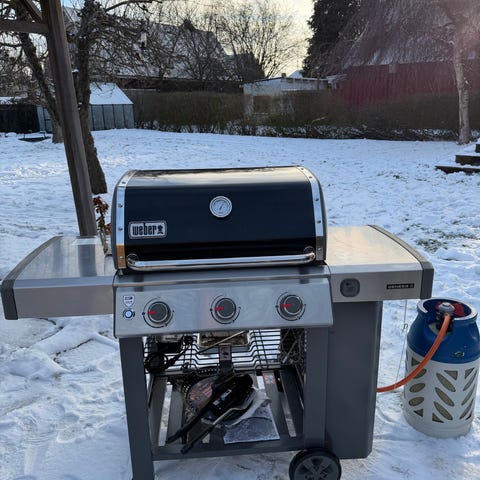 Webers topserie i rustfrit stål med 6 hovedbrændere - sidebrænder - smokerkasser - Infrarød brænder - rotisserie komplet med motor og spyd - termometer - overtræk - og meget mere!