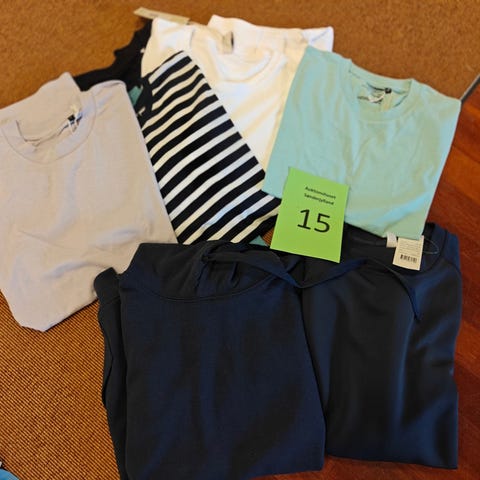 Herre basic tøj str. L. 2 stk. hoodie og 4 stk. t-shirt. Dansk kvalitet. Oprydning for virksomhed. Ubrugt.