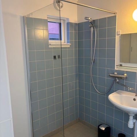 Walk-in brusevæg i klart glas, designet til at skabe en åben og minimalistisk bruseløsning. Væggen er lavet af hærdet glas, som sikrer holdbarhed og sikkerhed.
