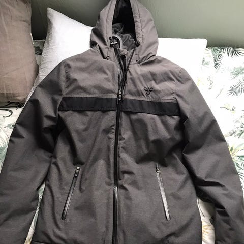 Lækker vinterjakke, broderet Hummel logo på bryst, med aftagelig hætte, elastik ved håndled, og kan strammes ind forneden, lynlåslomme til mobiltelefon på venstre overarm. 2 inderlommer.