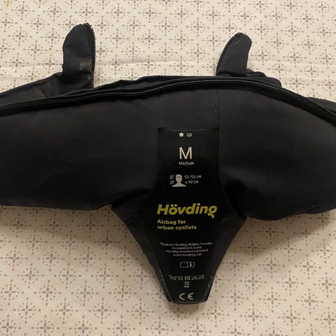 Hövding Airbag til cyklister i størrelse M. Farven er sort. Produktet er designet til at give beskyttelse ved cykling. Aldrig brugt pga sygdom.