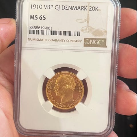 Danske 20 kr guld. Årgang 1913, 1916, 1914,1914, 1915,1908, . Kontant handel 8200