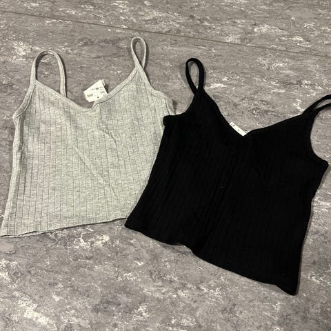 4 amme toppe sælges i sort, beige, grå og hvid. Alle er i str. L