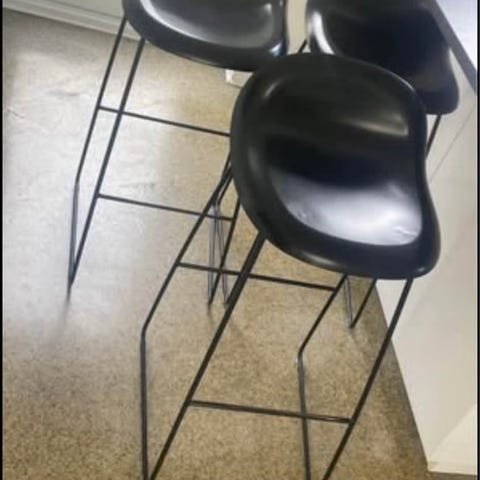 Gode og solide barstole fra Gubi i modellen "Bar Stool 3D". Ingen fejl eller mangler, men er brugt med ridser, har forsøgt at fange det på billederne. Kan nok med lidt snilde shines op, særligt stellet.