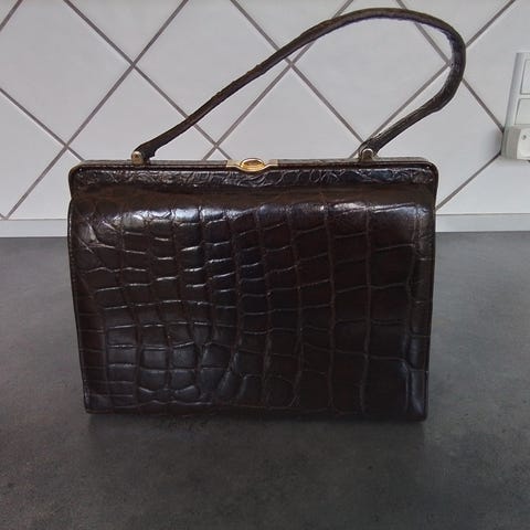 Vintage brun krokodilleskind håndtaske