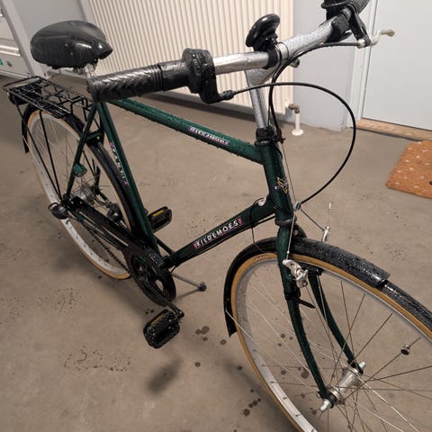 Rød Kildemoes cykel. Brugt men i meget god stand, da den har stået i garage. Cyklen har 7 gear, der ikke fejler noget. Sadlen har huller. Kan afhentes på Frederiksberg