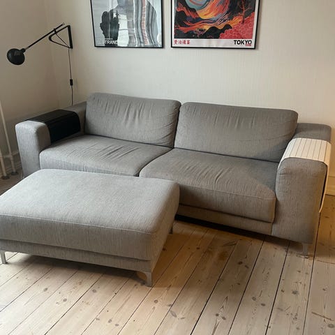 Stand: Sofaen er brugt. Sofaen fremstår pænt, men betrækket har naturlig brugsspor og kan nemt friskes op med rens eller betræksbehandling.